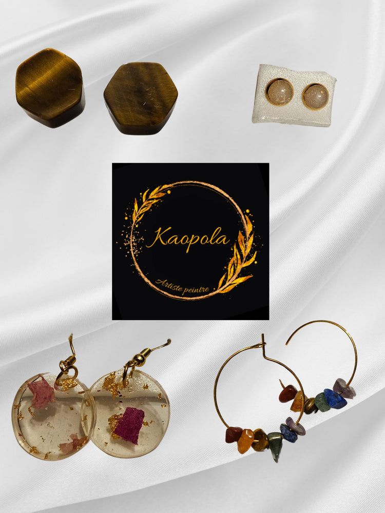 Les bijoux Kaopola faits à la main, pour agrémenter les oreilles et le cou sont une expression sublime de l'artisanat et de la créativité. Chaque pièce découle d’une toile déjas produite par Kaopola Artiste peintre. Que vous préfériez les boucles d'oreilles délicates ou les pendentif audacieux, ces accessoires sont conçus pour ajouter une touche de charme et de raffinement à votre tenue.